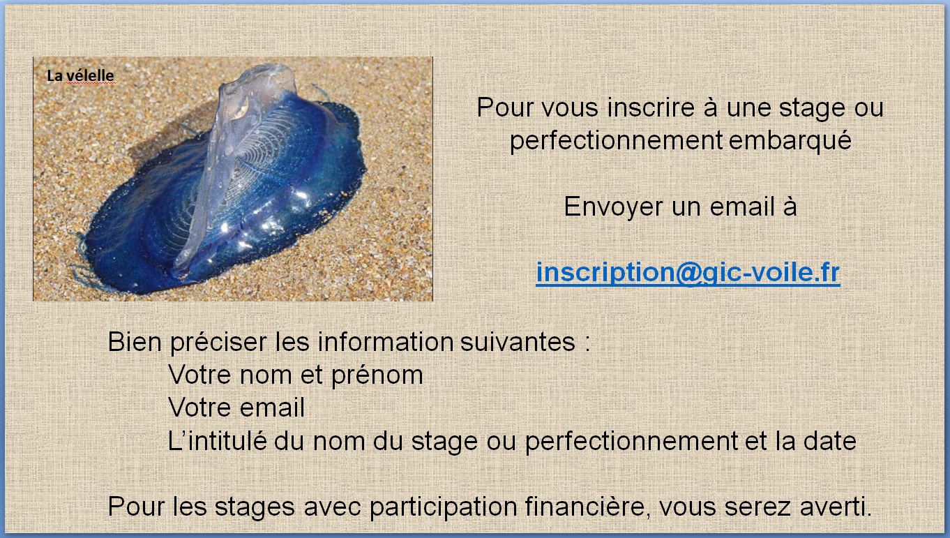 - Compas à pointe sèche, ou à minima un compas - Calculatrice de base et si possible une règle CRAS ou un équivalent - Son bon sens marin Stage en présentiel au Club - 6 stagiaires - 9h00 - 12h30 13h30 - 17h30 (Animateur LL)