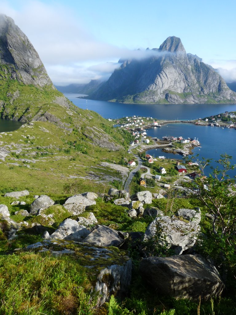 Après 70mn de traversée depuis Bodo, REINE la bien nommée est un port de pêche au sud-ouest de Moskenesoy au Lofoten qui inspire les artistes et étonne par ses couleurs et ses contrastes.